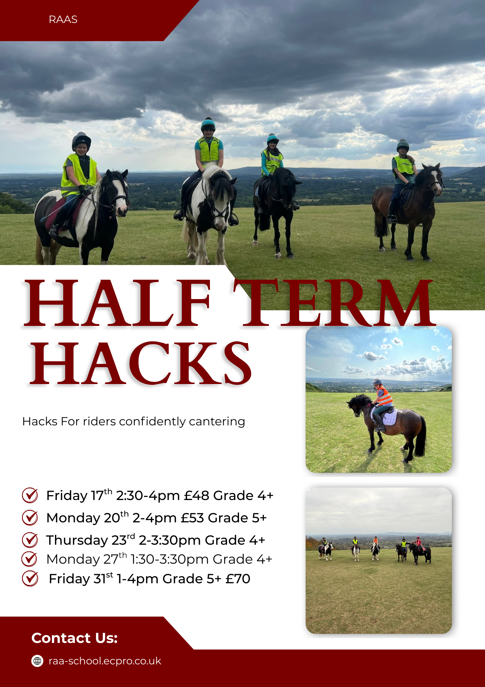 If an activity you are interested is full, please get in touch and we can add you to a waiting list. All things visible to you will be of the correct level.